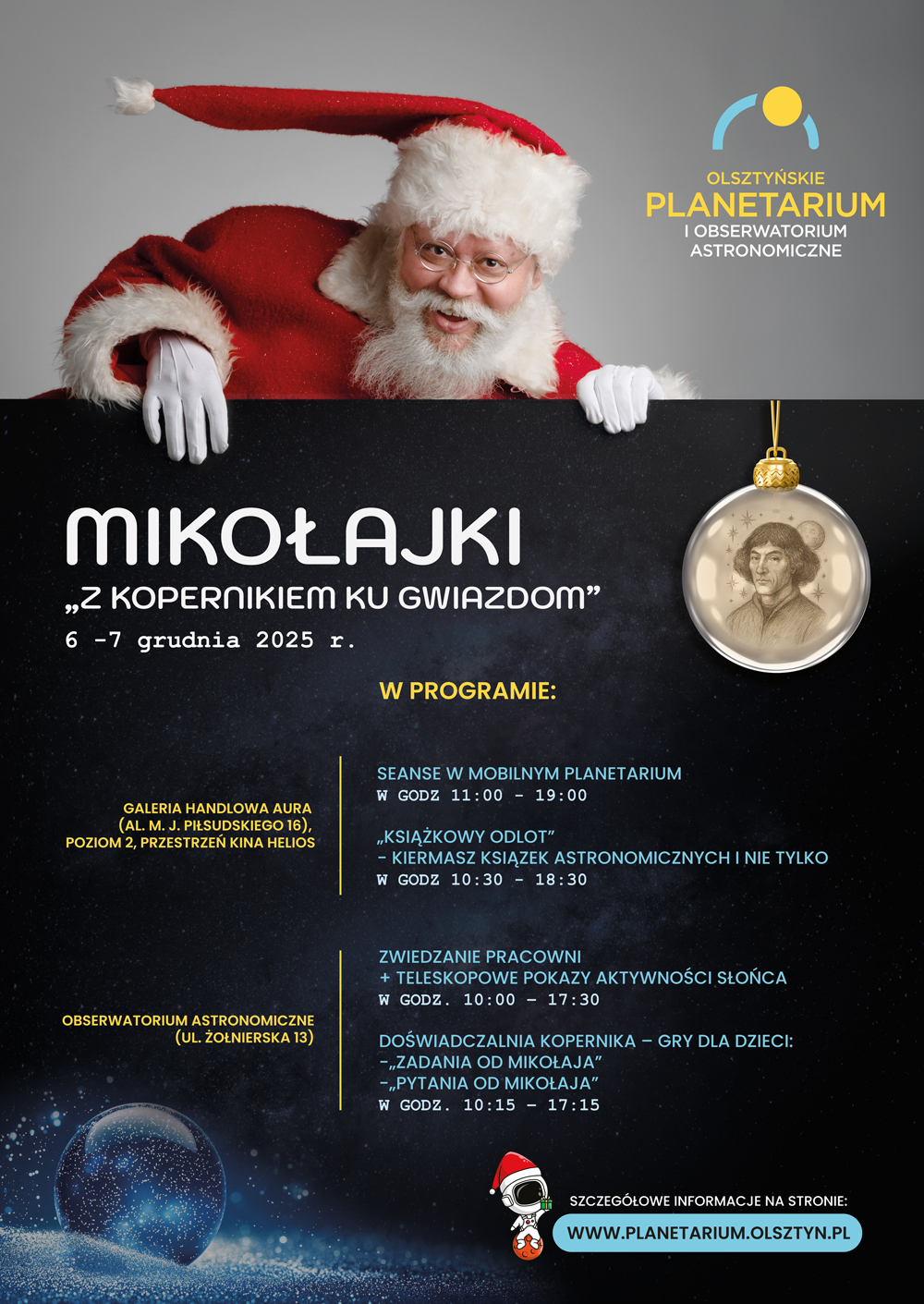W tym roku mikołajkowe świętowanie będzie naprawdę niezwykłe – otwieramy dla Was naszą nową, mobilną przestrzeń astronomiczną w Galerii Handlowej AURA.
