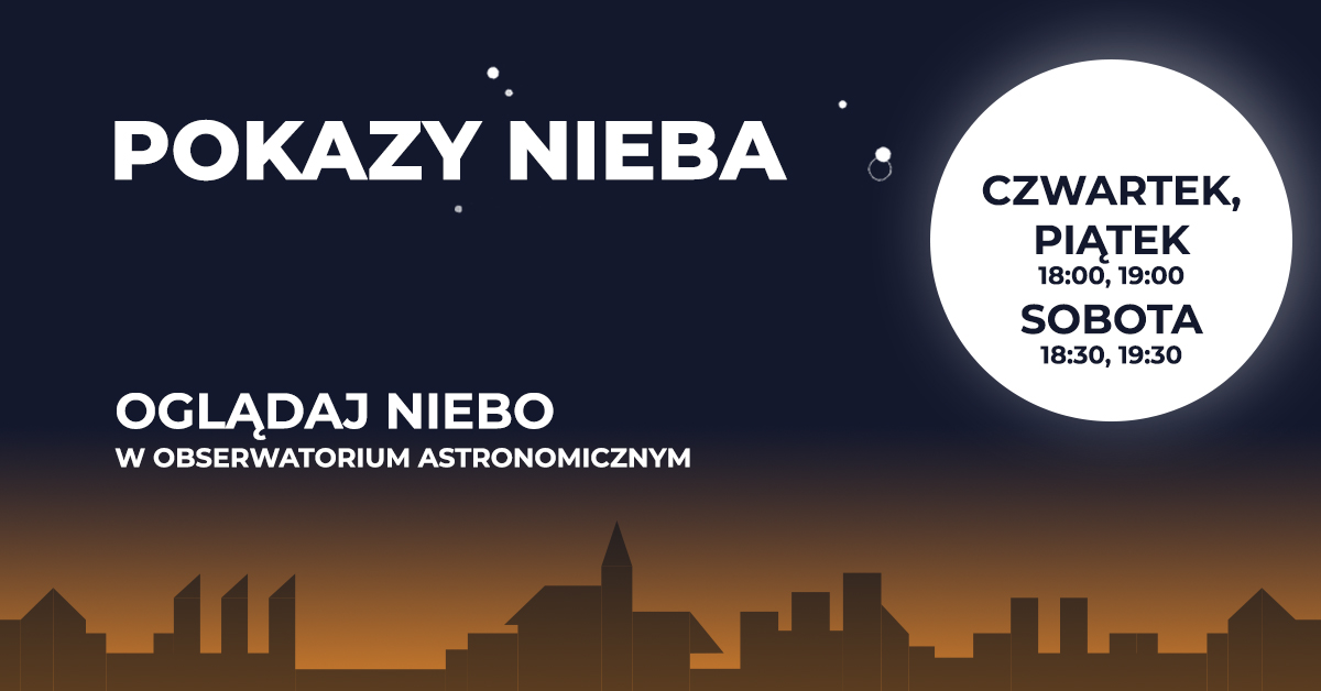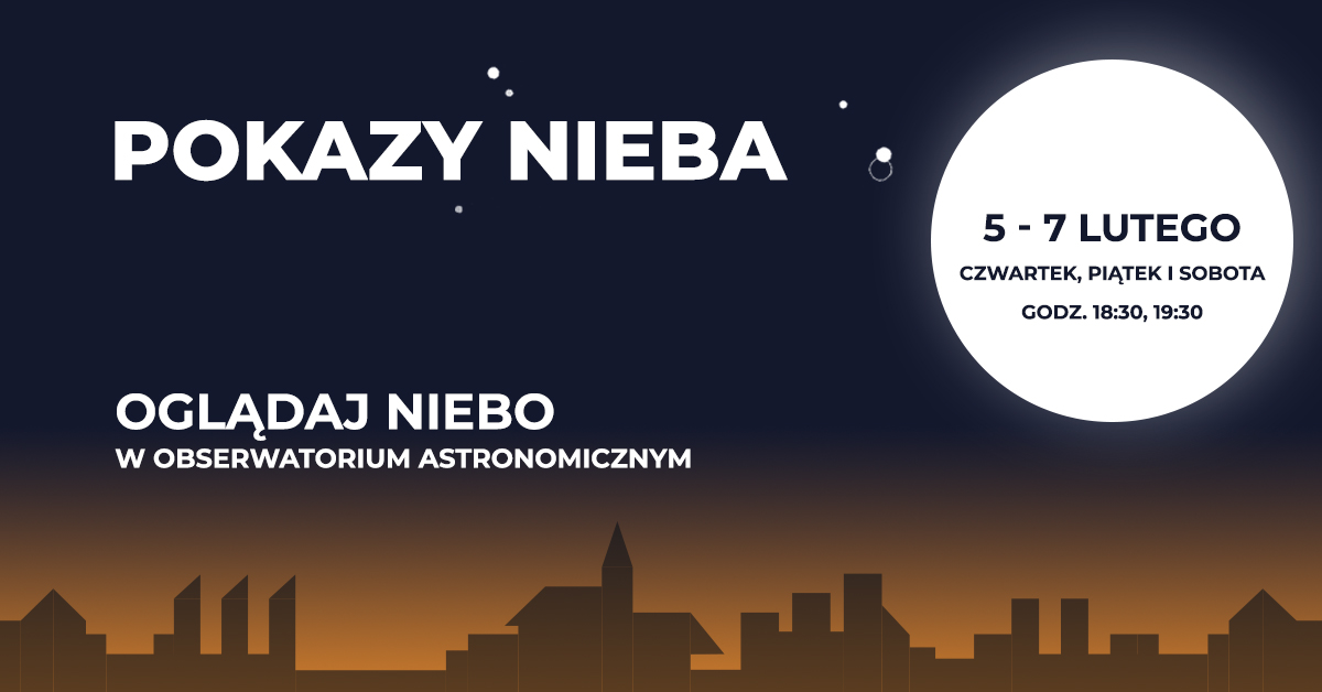 UWAGA! Pokazy nieba odbywają się przy bezchmurnym niebie. Ograniczona ilość miejsc. Obowiązuje telefoniczna rezerwacja miejsc pod numerem 89 650 04 40.
